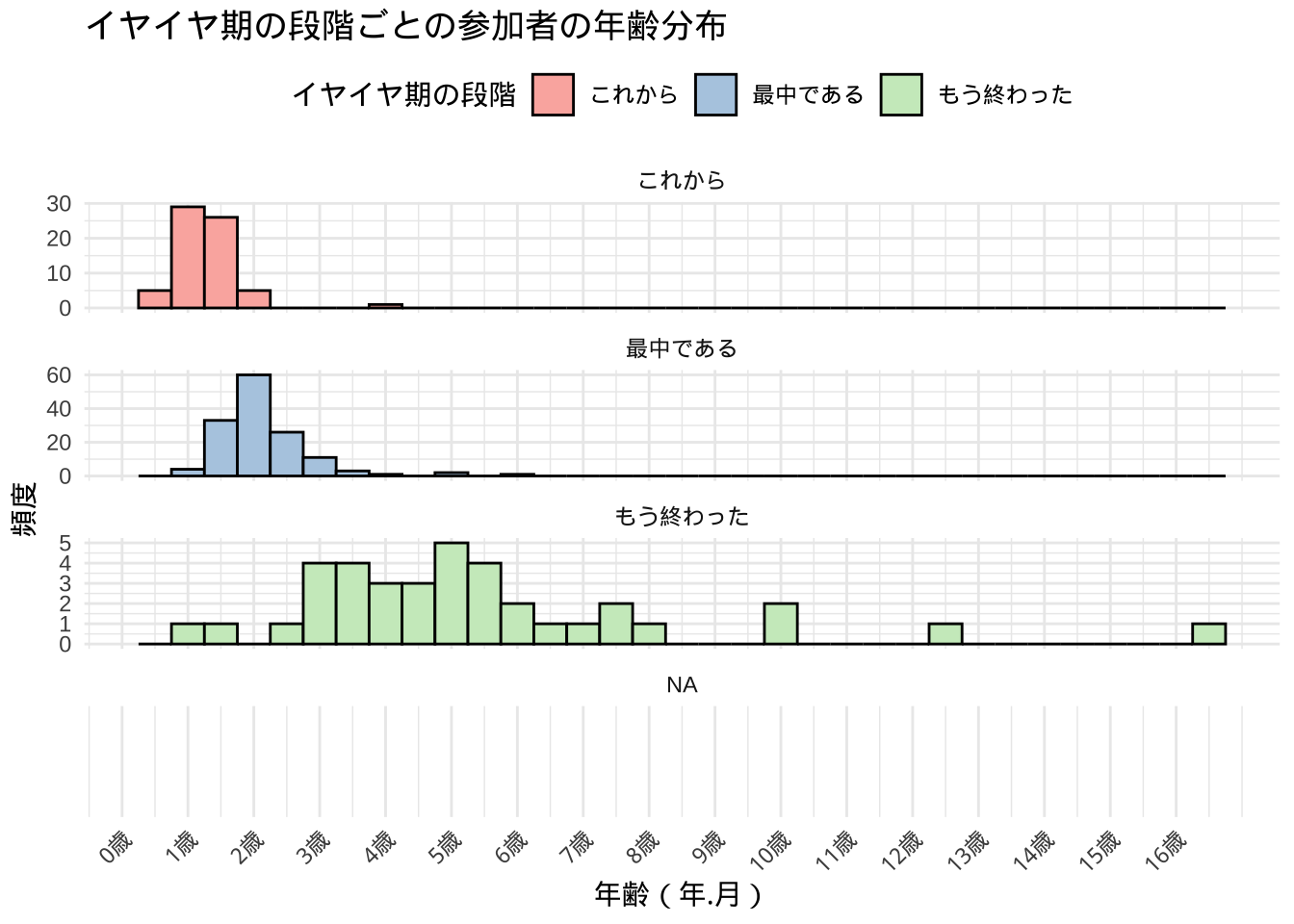 イヤイヤ期の段階ごとの参加者の年齢分布: