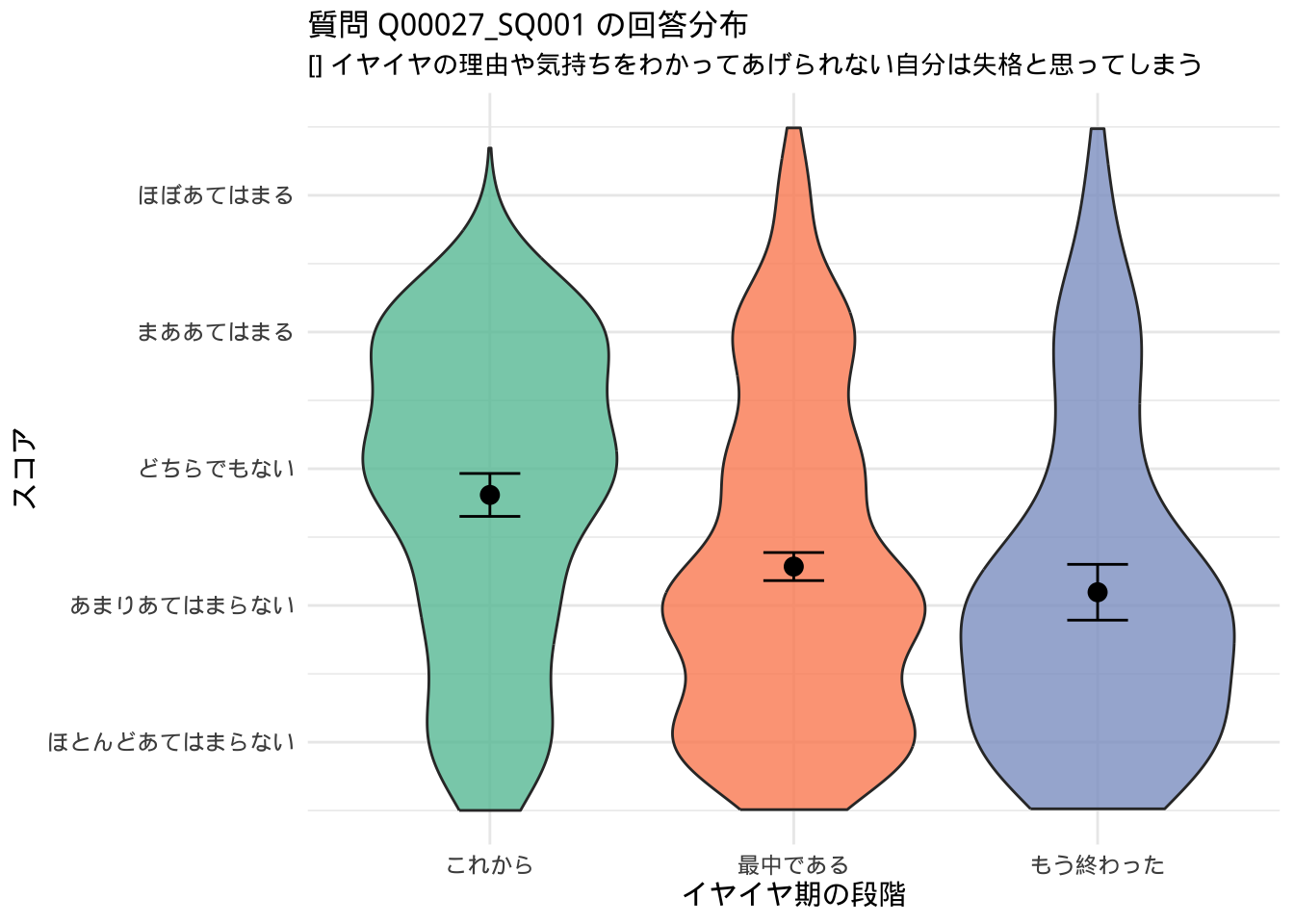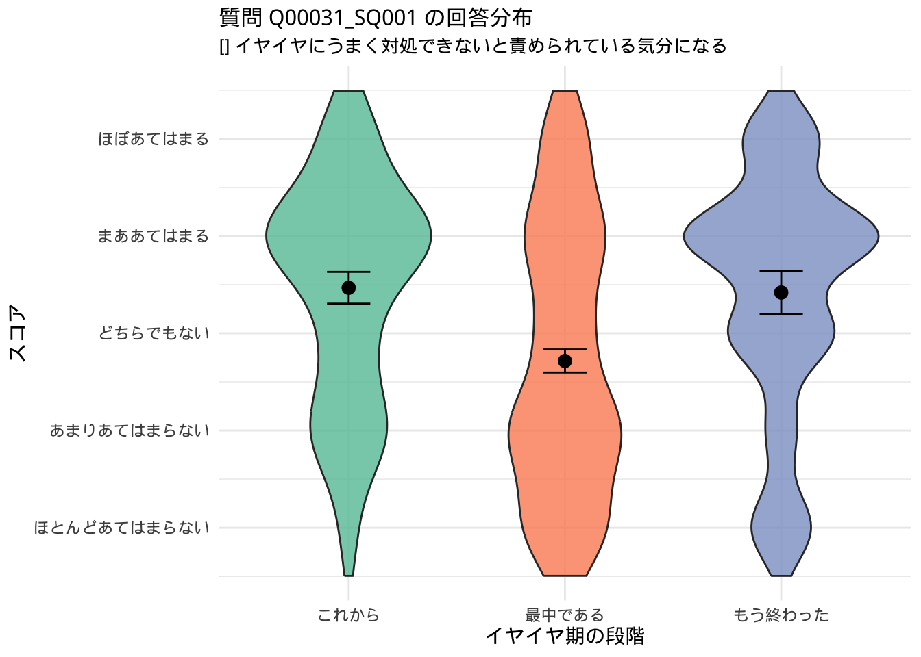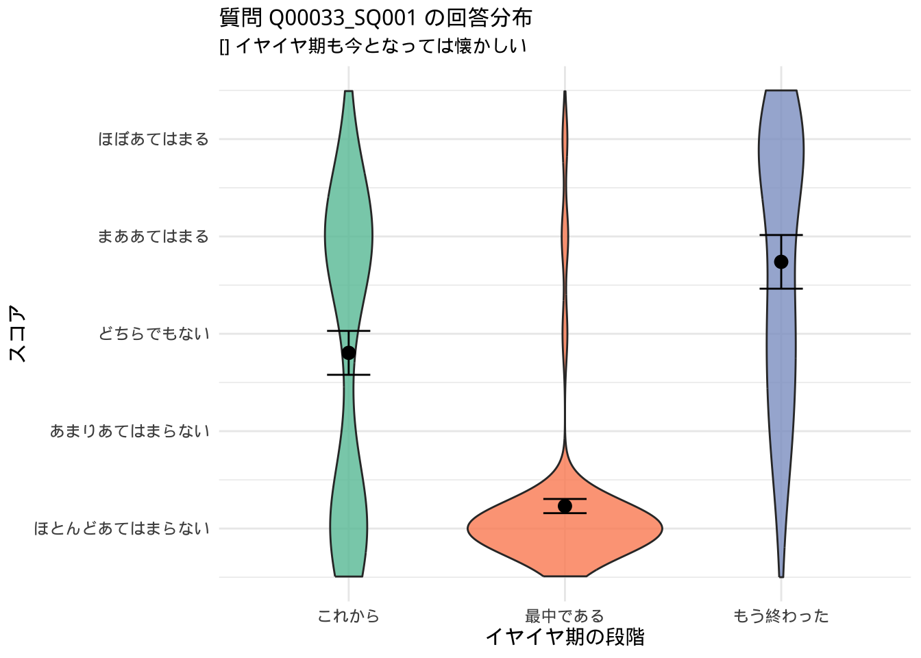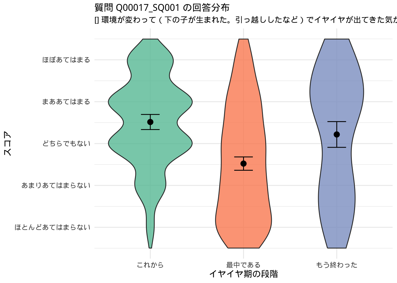 「これから」「最中」「もう終わった」で回答が分かれた質問(群間で統計的な差異があったもの)